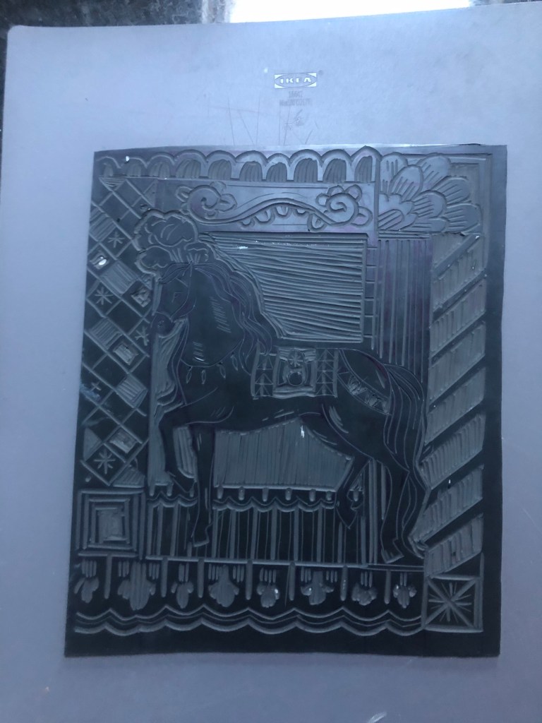 Initially I tried to use a clear polymer tile…. easy to trace a design through. But other than that, I didn’t really like it at all. It was very difficult to cut and almost possible to create detail…, I like detail.