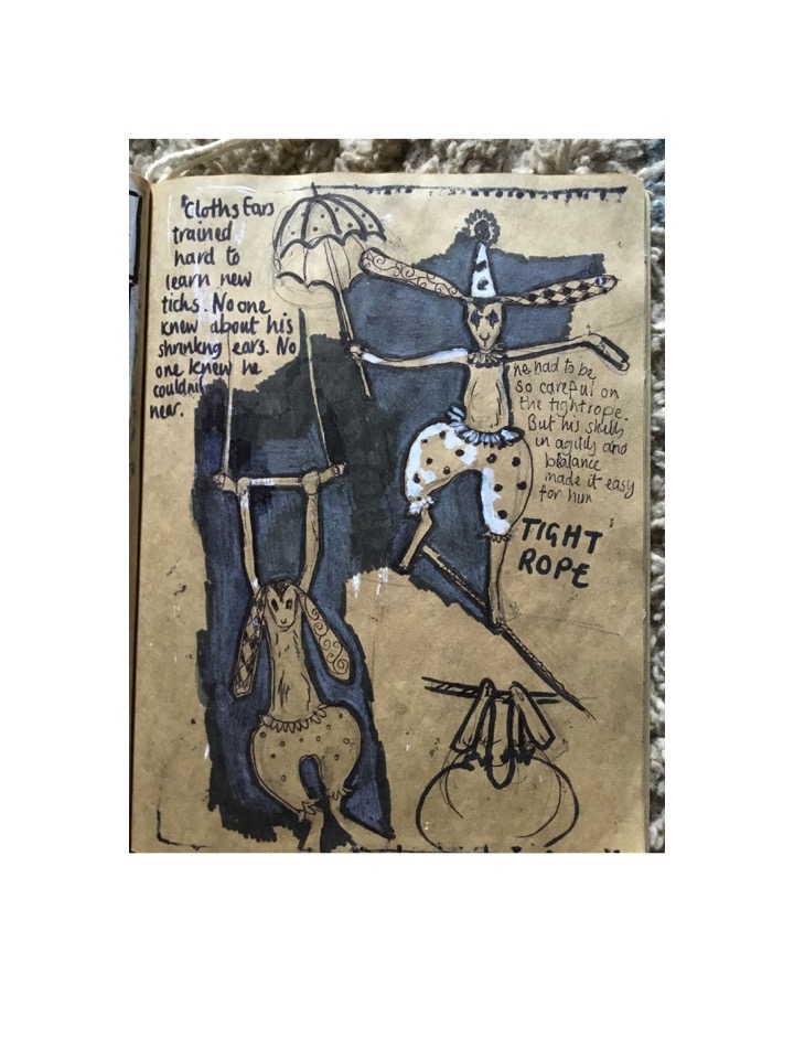 Writing a Children’s book was never really an ambition. But I always loved children’s books, especially the ones that had an underlying meaning and of course beautiful illustrations. As an 11 years old I was lucky yo have a teacher who encouraged her students to illustrate every piece of work and I think this is where the seed was planted. The origins of the story for Cloth Ears and the Circus started in tiny sketch book about 8 years ago and it started with an idea about an animal, donkey, rabbit, monkey etc. He had to have shrinking ears and this would of course affect his life negatively. This character would have to learn how to overcome this and live his life successfully.
