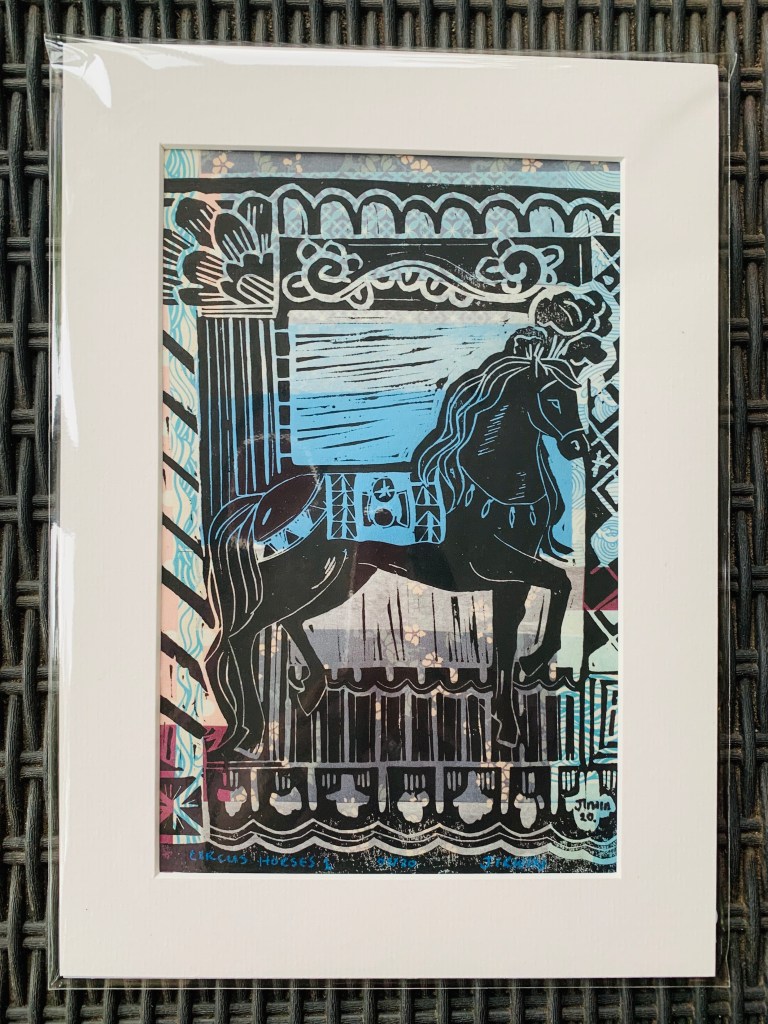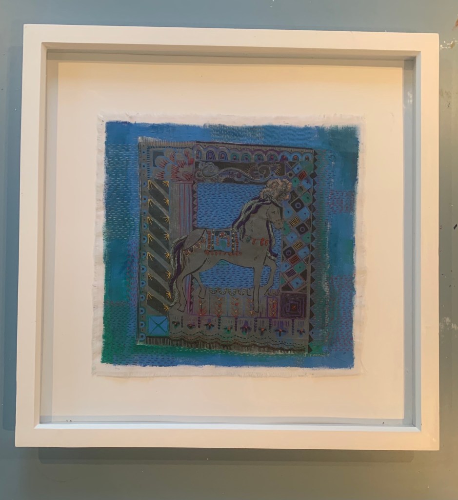 Gallery Paint & Stich Scruffy dog. Acrylic paint Posh Cat Super Powers Feathers and Foliage – Paint and Stitch Circus Horses 1 – Acrylic Paint, Lino Print and Stitch Circus Horse 2 Lino print, paint and collage Digital Work This work is taken from the Cloth Ears series Trays and Boxes Let’s build something together! Get in Touch Share this: Click to share on X (Opens in new window) X Click to share on Facebook (Opens in new window) Facebook Like Loading...